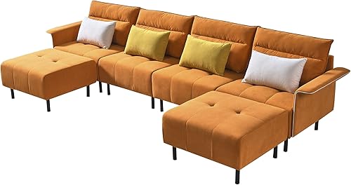 Homtique U Shaped Sectional Couch, Modular Sectional Sofa for Living Room Luxury Oversized Suede Corner Couch Furniture Set with Double Chaises and Pillows (U-Shape Sofa, Orange)